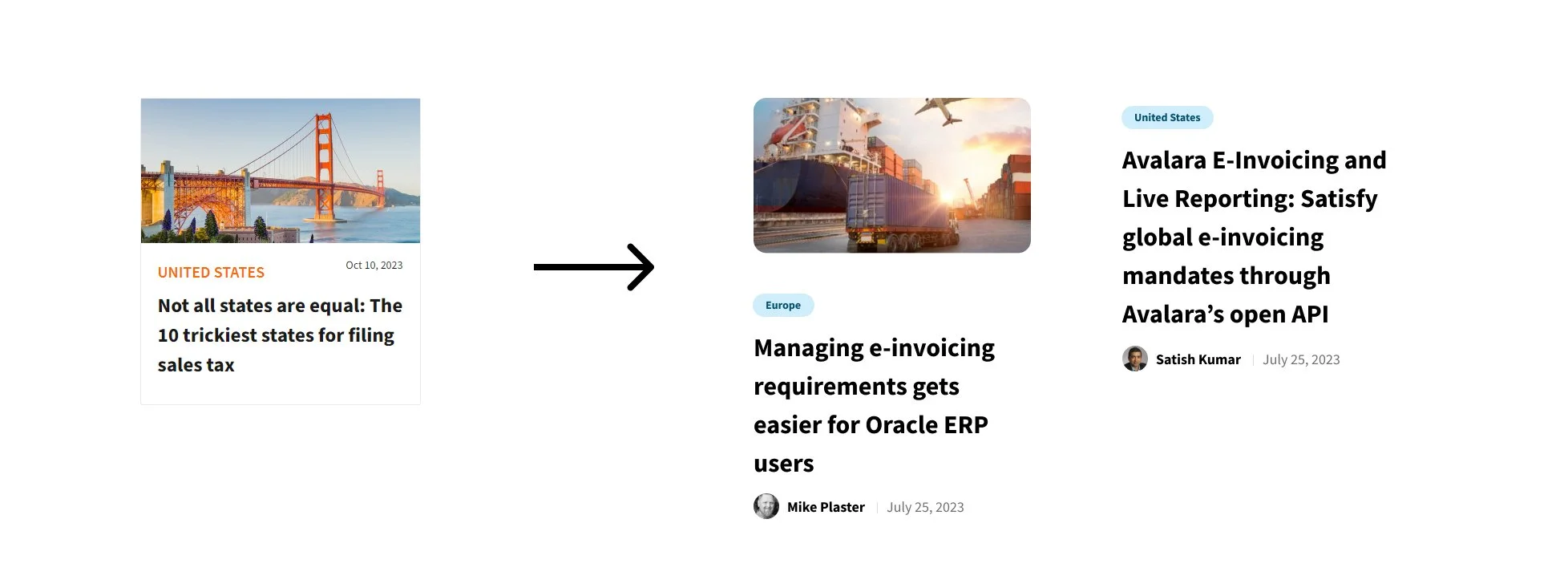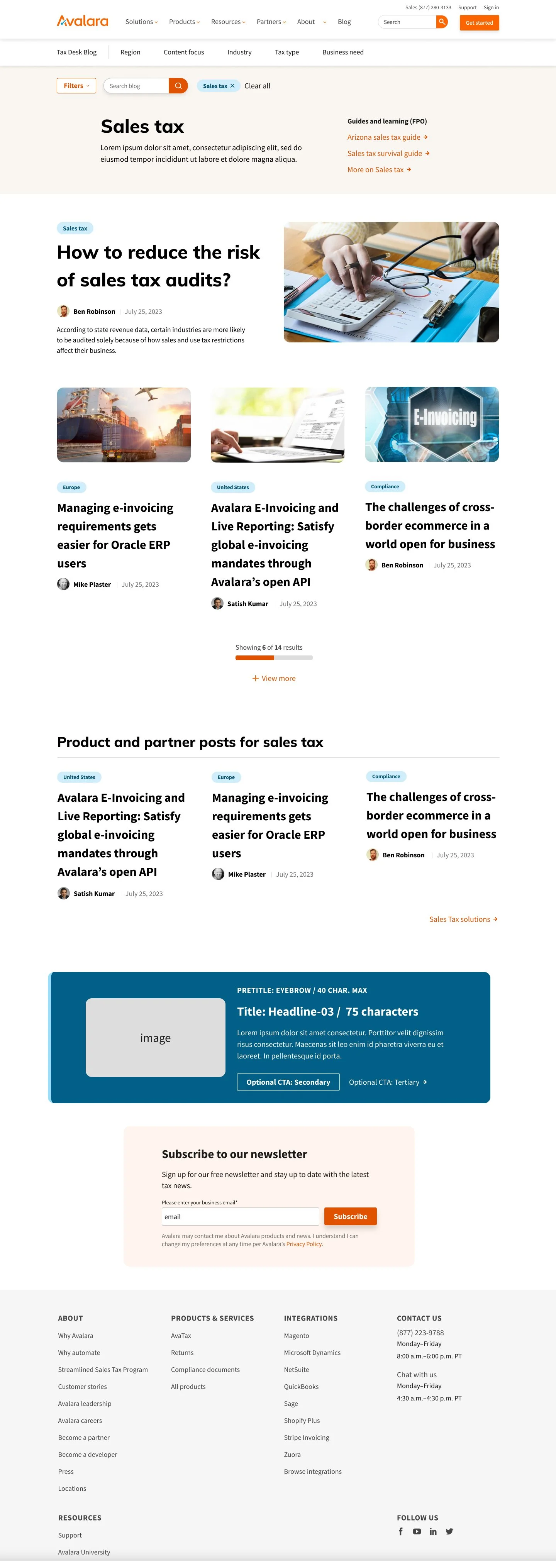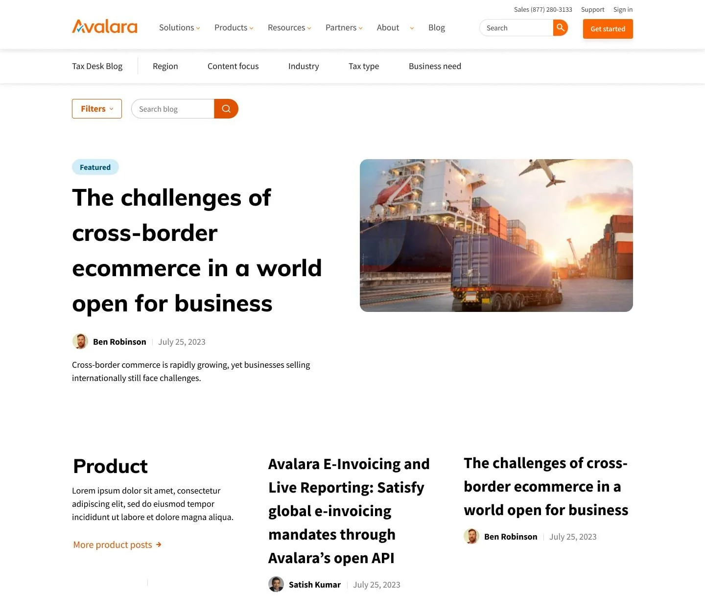 The Avalara blog contained a trove of content that demonstrated thought leadership on many tax topics and regions, but the visual design of the site was dated and did not communicate the value of the content. The browsing, search, and tagging systems were also less than optimal, and in addition to undermining the overall user experience, they weren’t helping the blog in SEO and search ranking either.