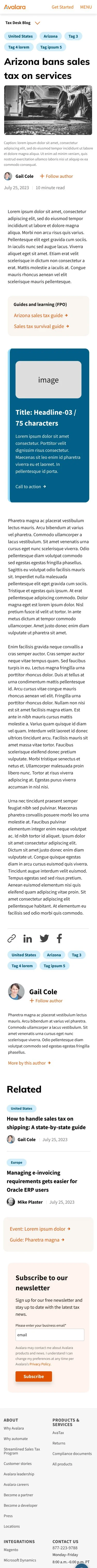 As lead UX designer, I redesigned the blog experience for Avalara. I consulted with our information architect and lead UX researcher to start with a basis in user feedback (from preliminary user testing), IA best practices, and SEO optimization. I also relied on my own competitive analysis of SaaS (software as a service) blogs.